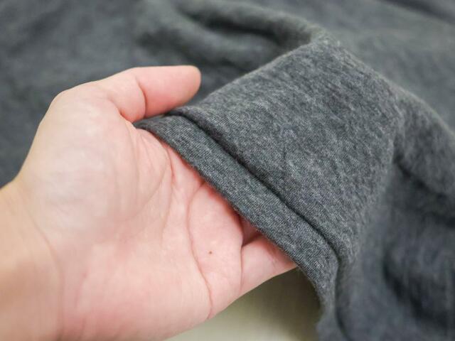 素材は綿90%、カシミヤ10%で、薄いけれどふっくらとやわらかく、とにかく気持ちいい。