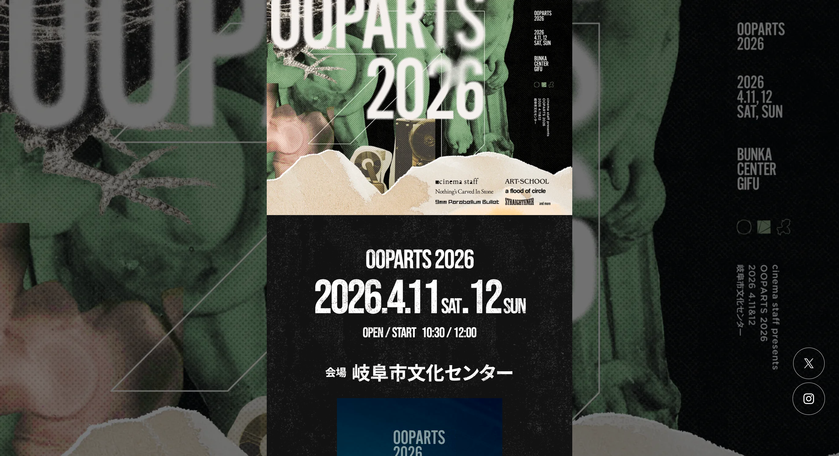 『OOPARTS 2026』は、2026年4月11日(土)・12日(日)の2日間、岐阜市文化センターにて開催予定。第1弾アーティストとして、9mm Parabellum Bullet、ストレイテナー、ART-SCHOOL、a flood of circle、Nothing’s Carved In Stone、cinema staff の6組が発表され、開催前から音楽ファンの間で大きな話題を呼んでいます。