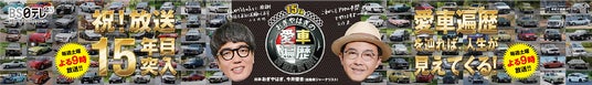 ポスターデザインには、おぎやはぎお二人のメッセージに加え、番組内で過去に登場した一部の車がズラリと並びます。