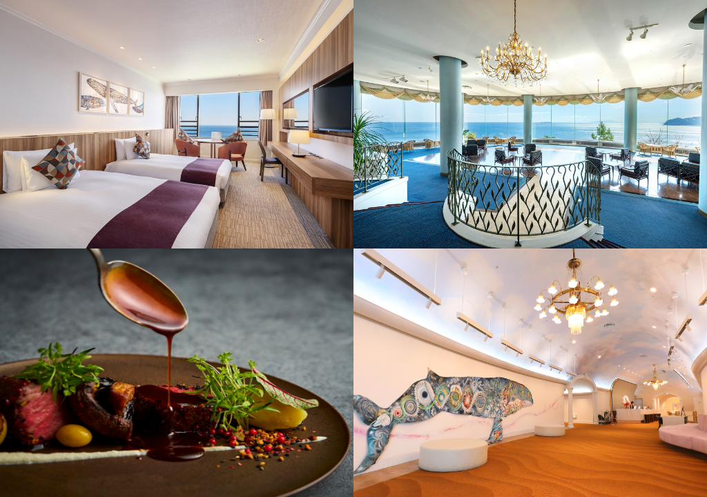 「ホテルニューアカオ」は、2023年に復活した熱海の人気ホテル。350室28タイプの客室は全室オーシャンビュー、どこまでも広がる海と空が一望できます。
