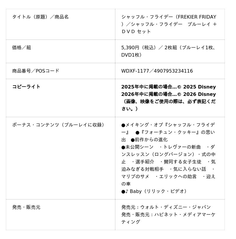 ティーンエイジャーの心を掴んだ名作『ハイスクール・ミュージカル』『ハンナ・モンタナ』のディズニーが贈る、笑って、笑って、ちょっぴり泣ける、最高のハートフル・ムービーで、『フォーチュン・クッキー』(03)の続編『シャッフル・フライデー』を2026年1月14日(水)に、ブルーレイ+DVDセットで発売いたします。