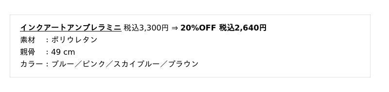 SNSで話題の雨傘・ビニール傘や機能性抜群な日傘はもちろん、レイングッズ、生活雑貨、キッズアイテム、直営店舗限定アイテムなど500種類以上の充実のラインナップ。全商品20~50%OFFとなっております。
