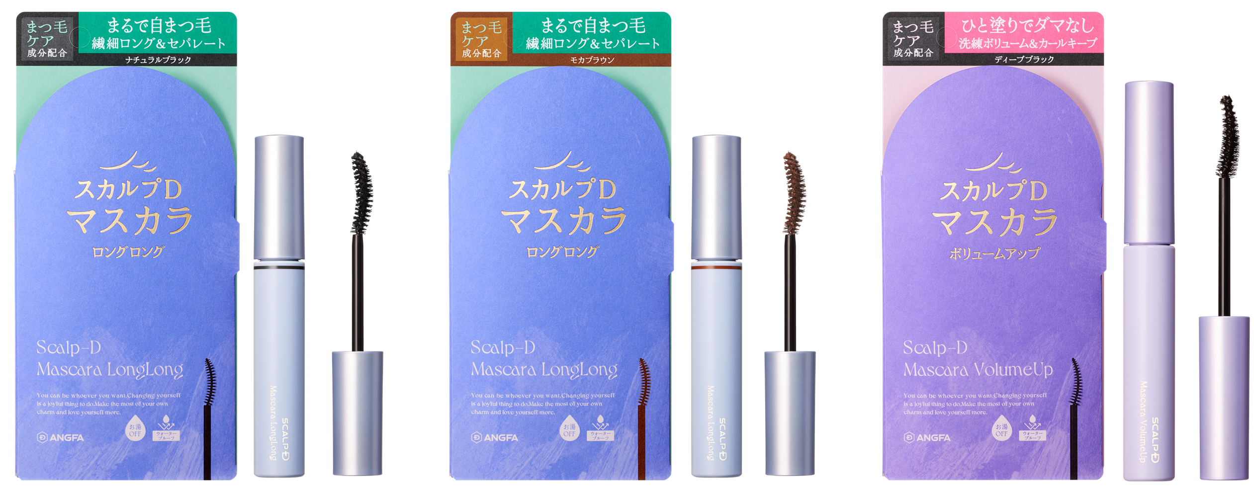 「スカルプDマスカラ」は、ロングタイプ2色(ナチュラルブラック/モカブラウン)・ボリュームタイプ1色(ディープブラック)の3アイテムを展開しています。スカルプDまつ毛美容液※1にも配合されているモイストナノカプセル※2がまつ毛にうるおいを与え、毛髪補修成分がキューティクルのめくれを整えます。