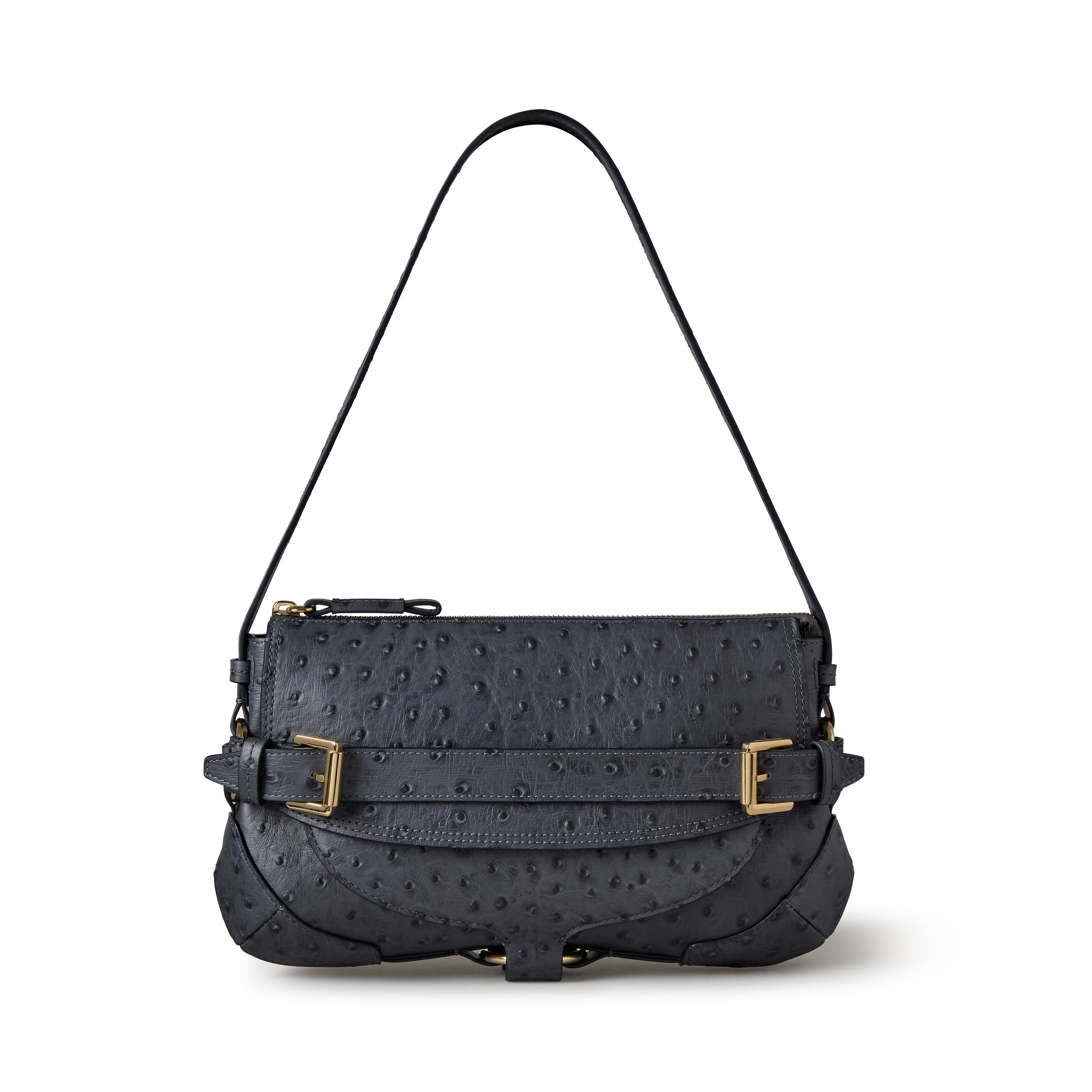 シーズナルカラーは、サマセットゴールドのクリンクルメタリック、ピグメントブルーのヘアカーフやスエード、ストーミーブルーのオーストリッチ型押しなど、多彩な素材と表情豊かなバリエーション。
