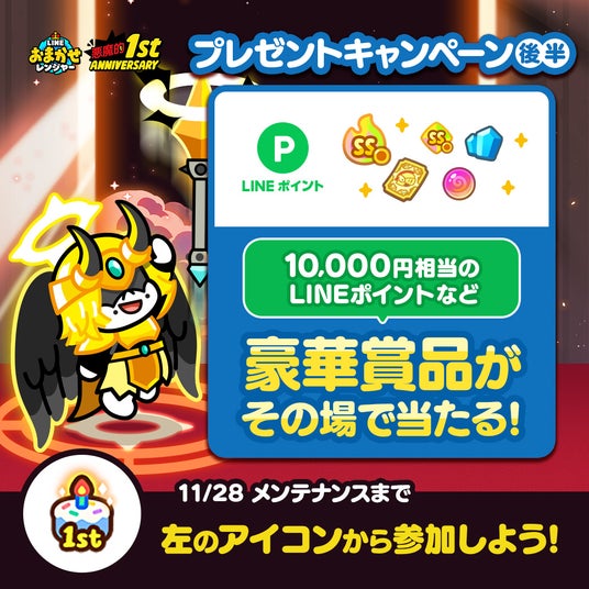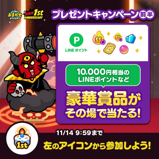 LINEヤフー株式会社は、当社が展開する放置系RPG「LINE おまかせレンジャー」(iPhone・Android対応/無料)がサービス開始から1年を迎えたことを記念し、大型イベント「悪魔的1stアニバーサリー」を開催中です。