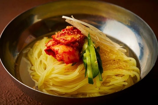 【極冷麺 通常¥1,399 ▶︎ ¥449】こじまの焼肉は、濃厚なタレ、豊かな脂、深い肉汁の味わいが特徴です。その濃厚な味をすつきりとリセットし、さわやかな酸味とコシのある生麺で「最後の満足感」をお届けします。〆の一皿まで妥協しない、こじまのおもてなし。