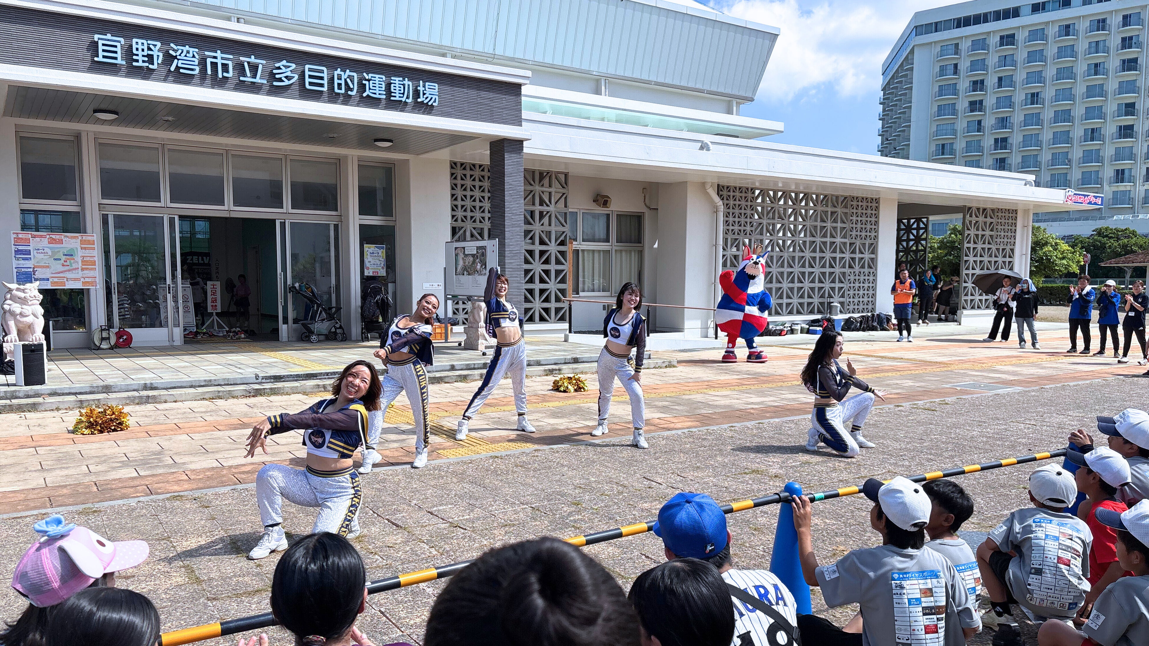 また、10月13日(月)「スポーツの日」に宜野湾市で初めて開催された「スポーツウェルネスフェスタ」には、ゴーディーと一緒にキングスダンサーズも参加しダンスを披露しました。フリースローチャレンジコーナーや次世代のデジタルチャンバラ「SASSEN」、グラウンドゴルフ体験などのスポーツ体験を行う子どもたちを応援し、地域の皆さまと交流を深めました。