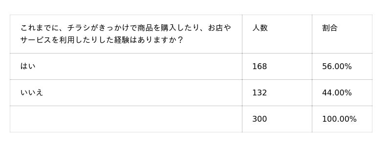 【質問1.】これまでに、チラシがきっかけで商品を購入したり、お店やサービスを利用したりした経験はありますか?