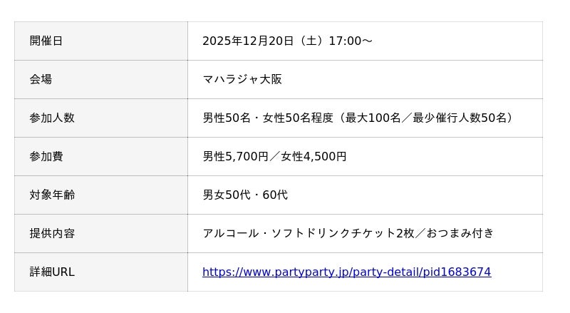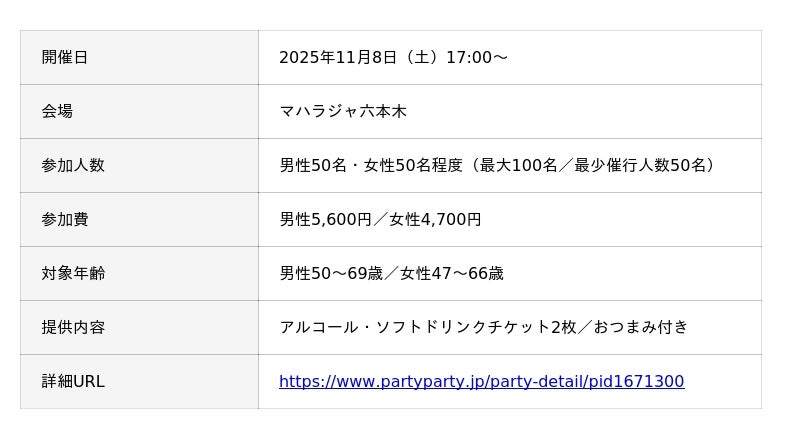 本企画を通じて、ミドル・シニア世代が“恋愛に前向きになれる場”を提供し、年齢を重ねても自分らしく出会いを楽しめる環境づくりを進めてまいります。