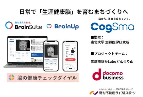 CogSmartは、東京都「多摩リーディングプロジェクト」の2024年度採択企業として、野村不動産ライフ&スポーツ社の運営するスポーツクラブ「メガロス」、NTTドコモビジネス社と共に、三鷹市を中心とした地域実証事業を実施しました。本事業では、BrainUpアプリを活用した認知症・フレイル予防の有効性を検証し、その成果を2025年9月に三鷹市での事業報告会にて発表しました(東京・三鷹市で事業報告会 | 朝日新聞)。