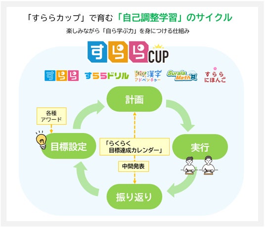 「すららカップ」は、すららネットのICT教材「すらら」「すららドリル」「ピタドリ」「すらら漢字アドベンチャー」「Surala Math」「すらら にほんご」を利用する世界中の子どもたちを対象にした学習イベントです。年齢や学年、国境を越え、偏差値や点数ではなく「総学習時間」や「クリアユニット数」といった“努力量”で競い合います。約1か月半の期間を通じて、子どもたちが自ら学び続ける力「自己調整学習スキル」の習得と向上を目指します。
