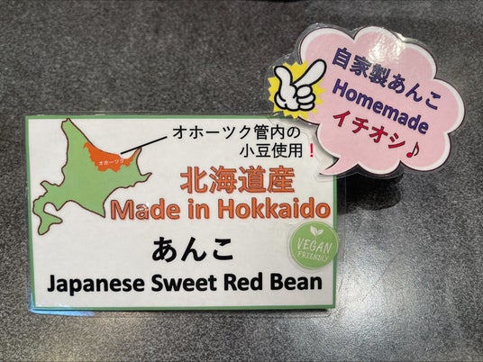 オホーツク産小豆を使っていることを伝えるPOP
