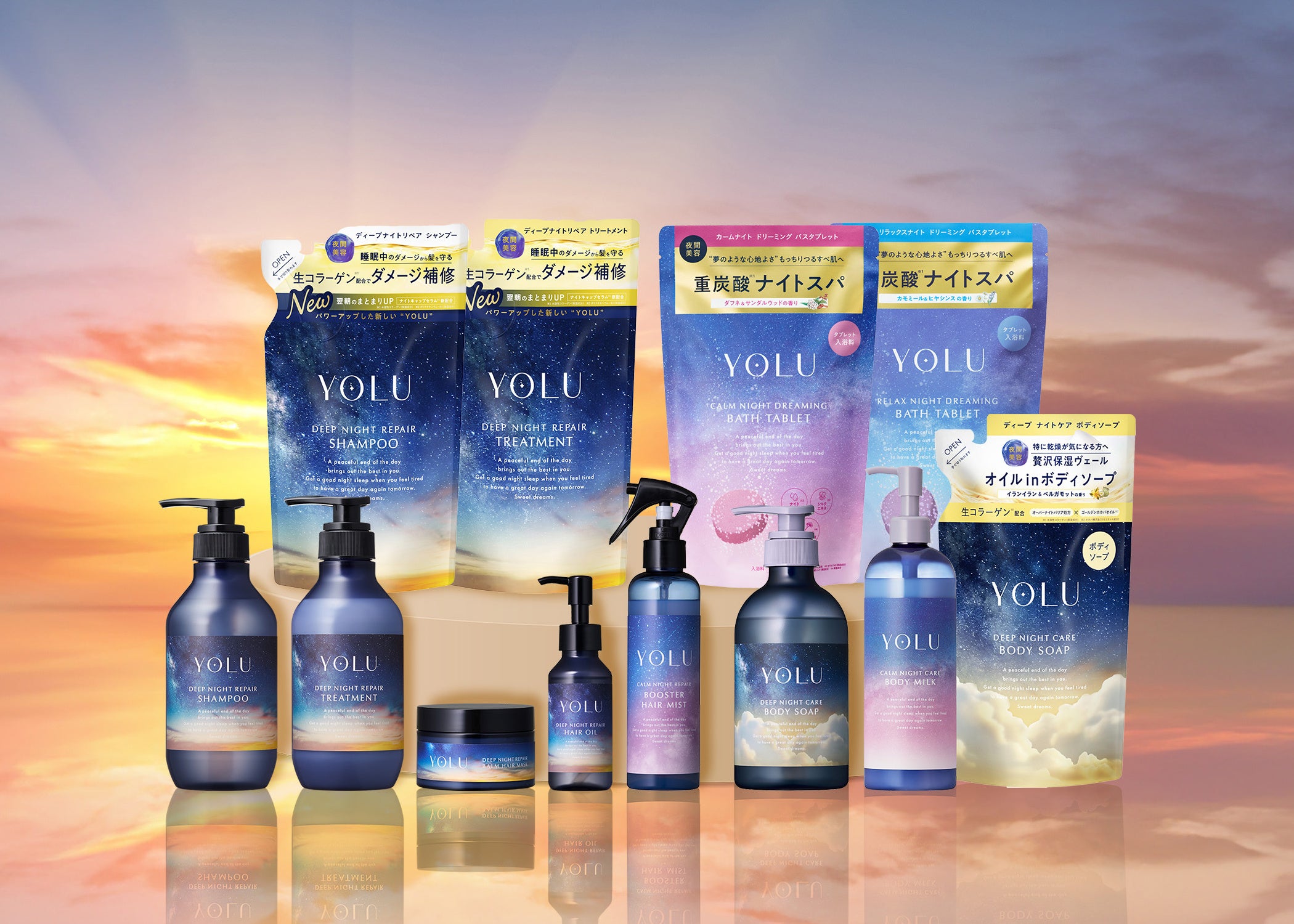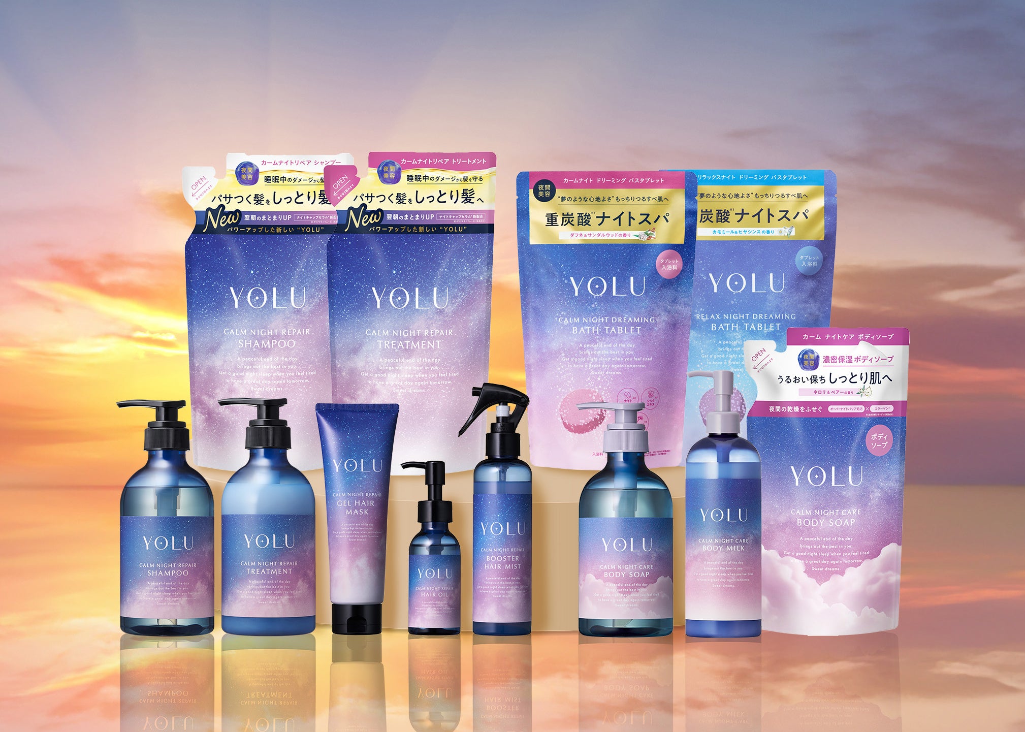 YOLUからは、シャンプー・トリートメント・アウトバスなどヘアケア商品8点に加え、人気のバスタブレットなどボディケア商品4点や、新発売のスキンケア商品がお試しできる4連サシェを含めた“豪華16点セットが35%OFF”でご購入いただけます。ヘアケアはなりたい仕上がりやお悩みに合わせて、カーム・リラックス・ディープの3タイプから選択できます。ヘアケアと同ラインのボディソープやバスタブレットで、自分を労わる夜のバスタイムにぴったりのラインナップです。
