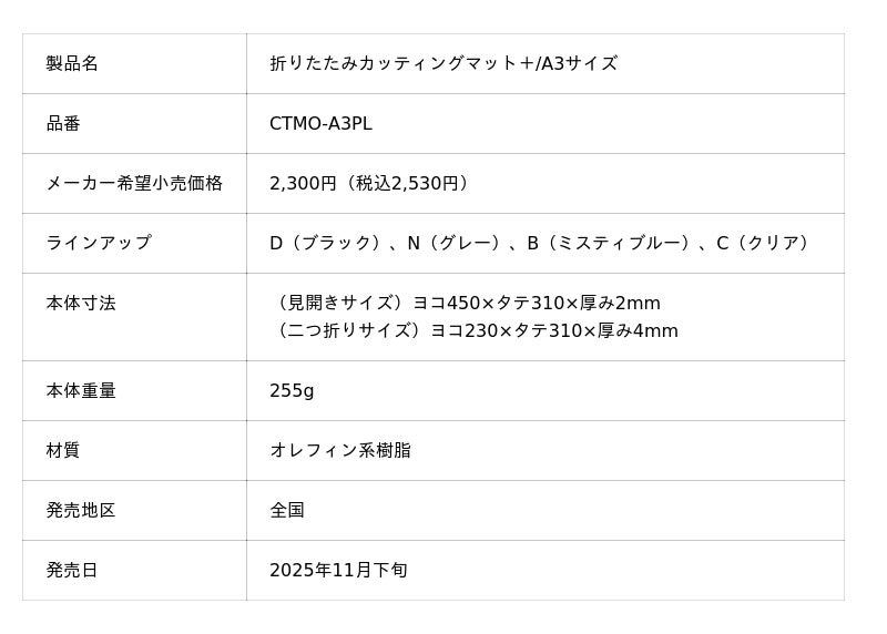 - 半分に折りたたんでコンパクトに持ち運べるカッティングマット- キズが目立ちにくく、波型の折り目も気にならないフラット設計