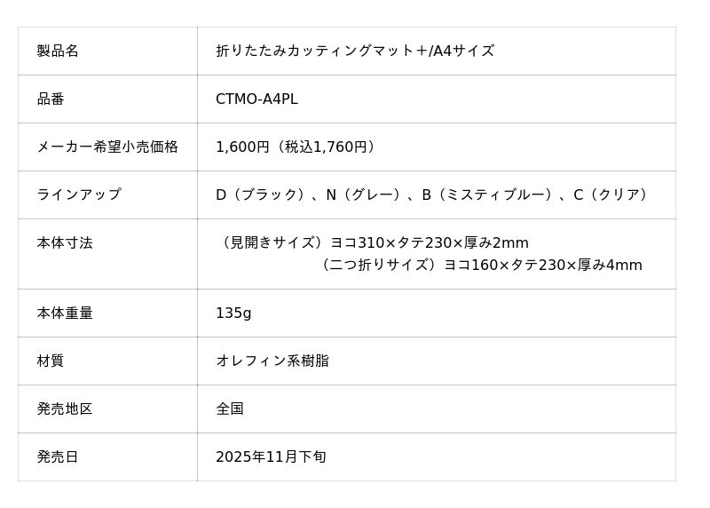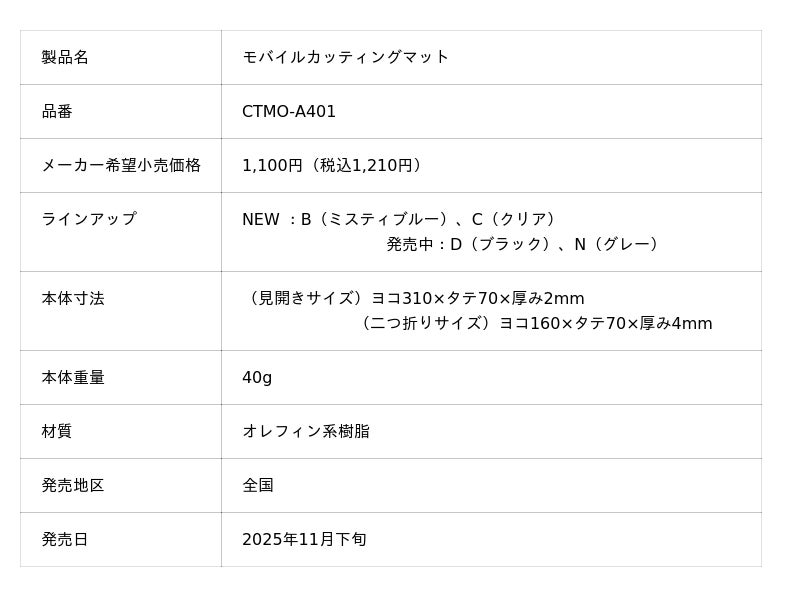 ナカバヤシ株式会社(本社:大阪市中央区、社長:中林一良)は、必要最低限のデザインが使いやすい「折りたたみカッティングマット+シリーズ」を全国で2025年11月下旬より順次発売します。また現在発売中のモバイルカッティングマットに新色が追加されます。