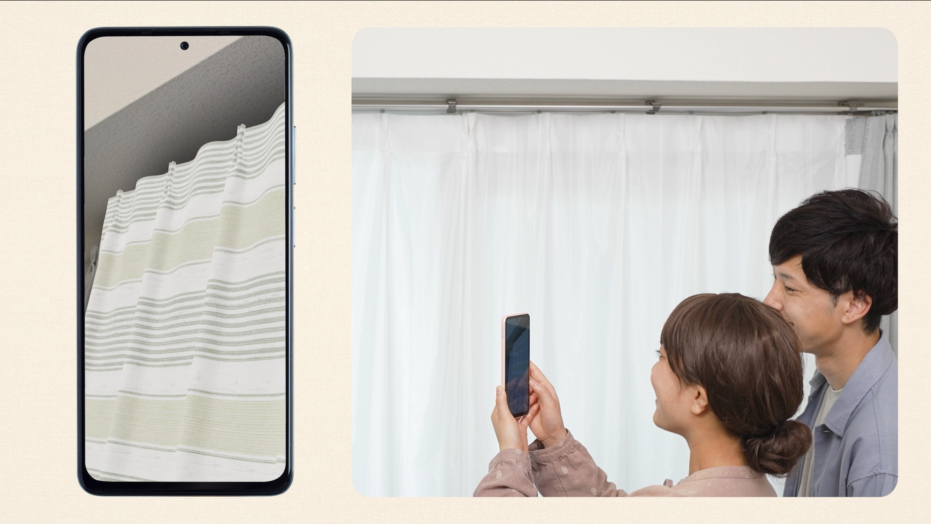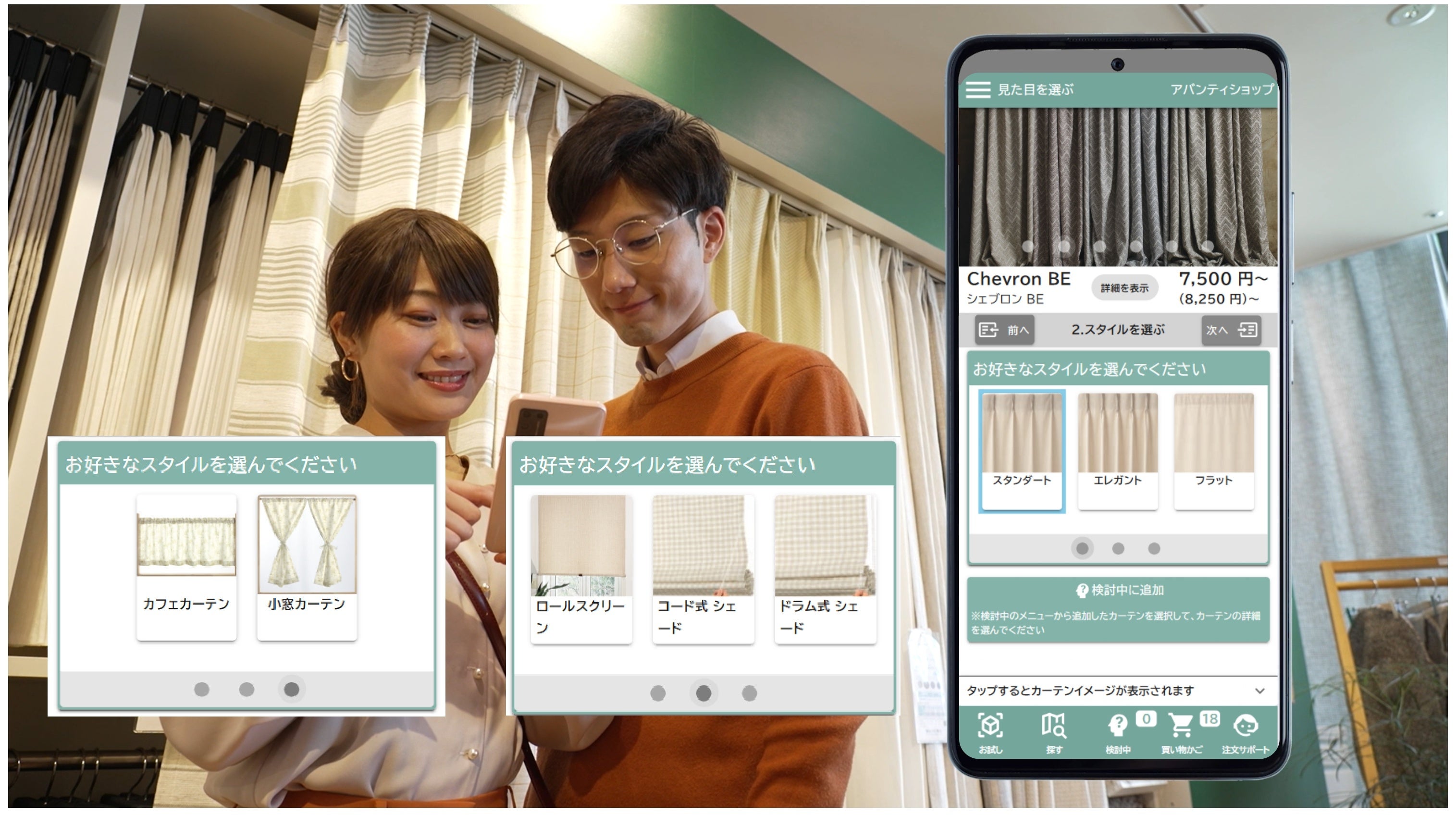 スマホひとつで、カーテン選びがもっと楽しく、もっと簡単に。