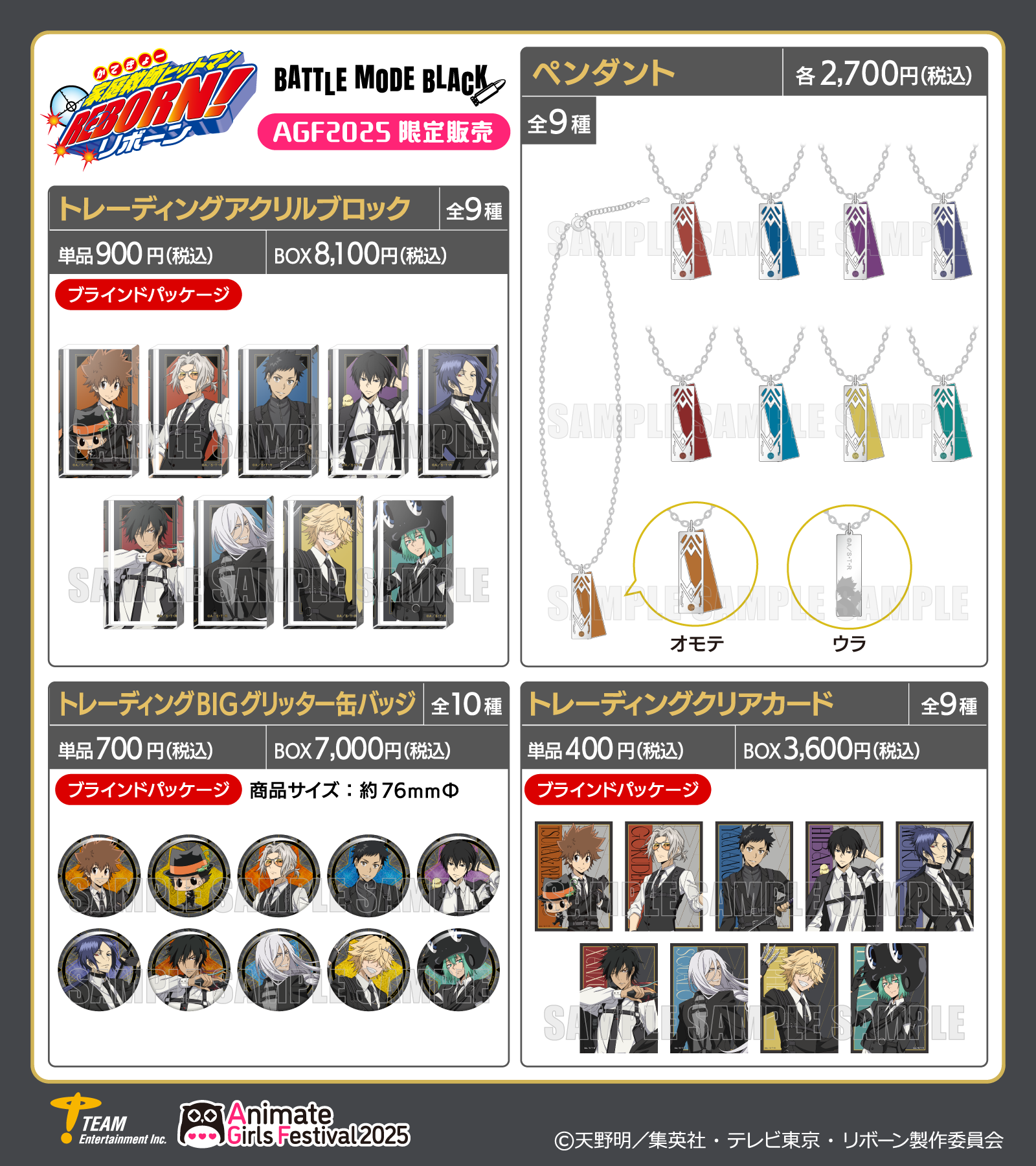 今回の【アニメイトガールズフェスティバル2025】では、TVアニメ『家庭教師ヒットマンREBORN!』、TVアニメ『ブルーロック』、『弱虫ペダル LIMIT BREAK』、TVアニメ『WIND BREAKER』、映画『鬼太郎誕生 ゲゲゲの謎』、『DIG-ROCK』、『ハンサムロンダリング -the mystic lover-』、『花笑む彼と』、『ラヴァーズループ』の計9タイトルのオリジナルグッズをご用意しました!