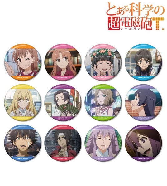 御坂美琴、白井黒子、初春飾利、佐天涙子、食蜂操祈、婚后光子、湾内絹保、泡浮万彬、上条当麻、削板軍覇、帆風潤子、警策看取の印象的なシーンを缶バッジに仕上げました。