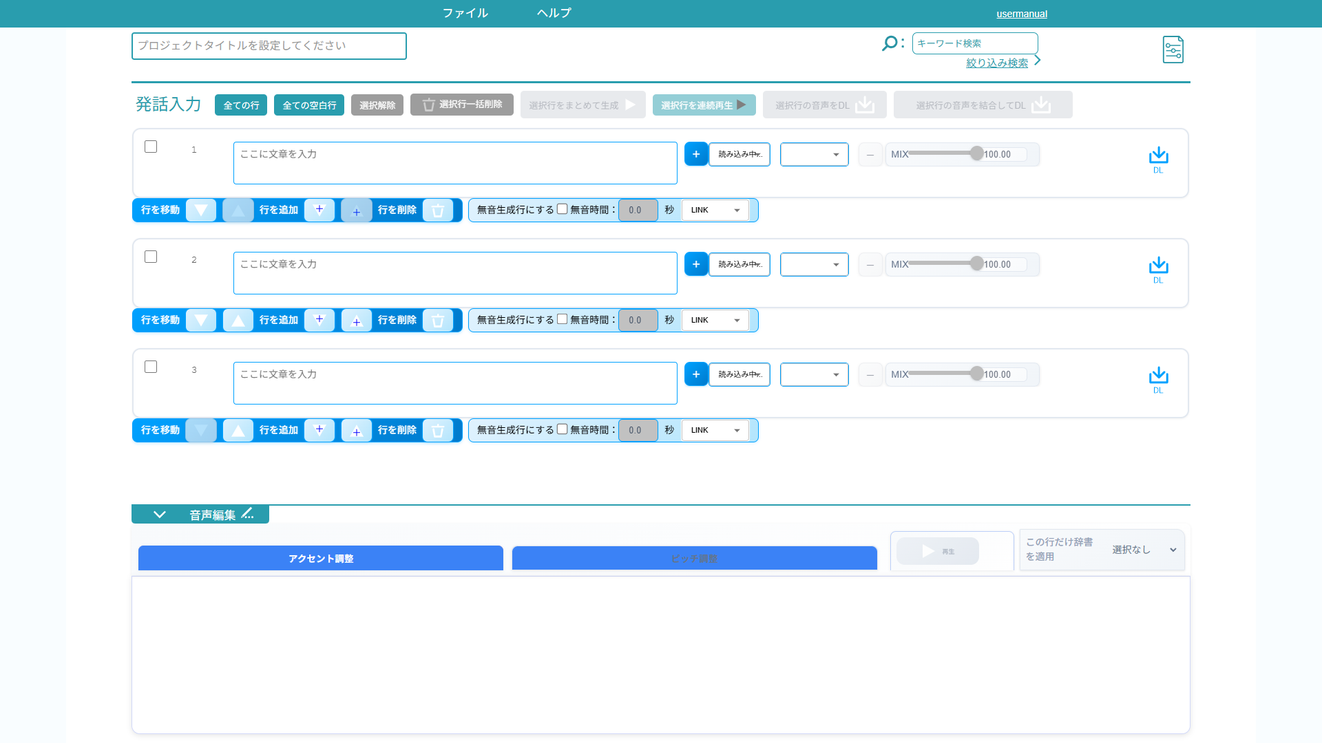 [1] ORENDA WORLD. (n.d.). Yomiage Editor. http://yomiage-editor.orenda.co.jp/