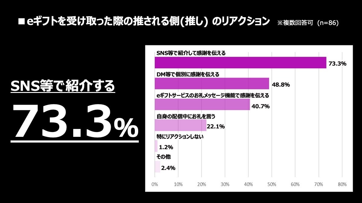 ■ eギフトが“感謝を伝えるきっかけ”に。「推される側」の約73%がSNS等で紹介してファンに感謝を伝える