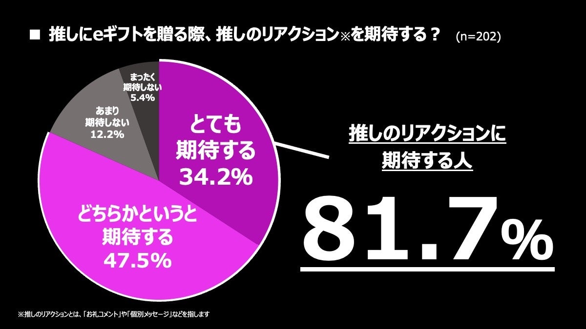 - 約82%がeギフトを贈る際に推しのリアクションを期待していると回答