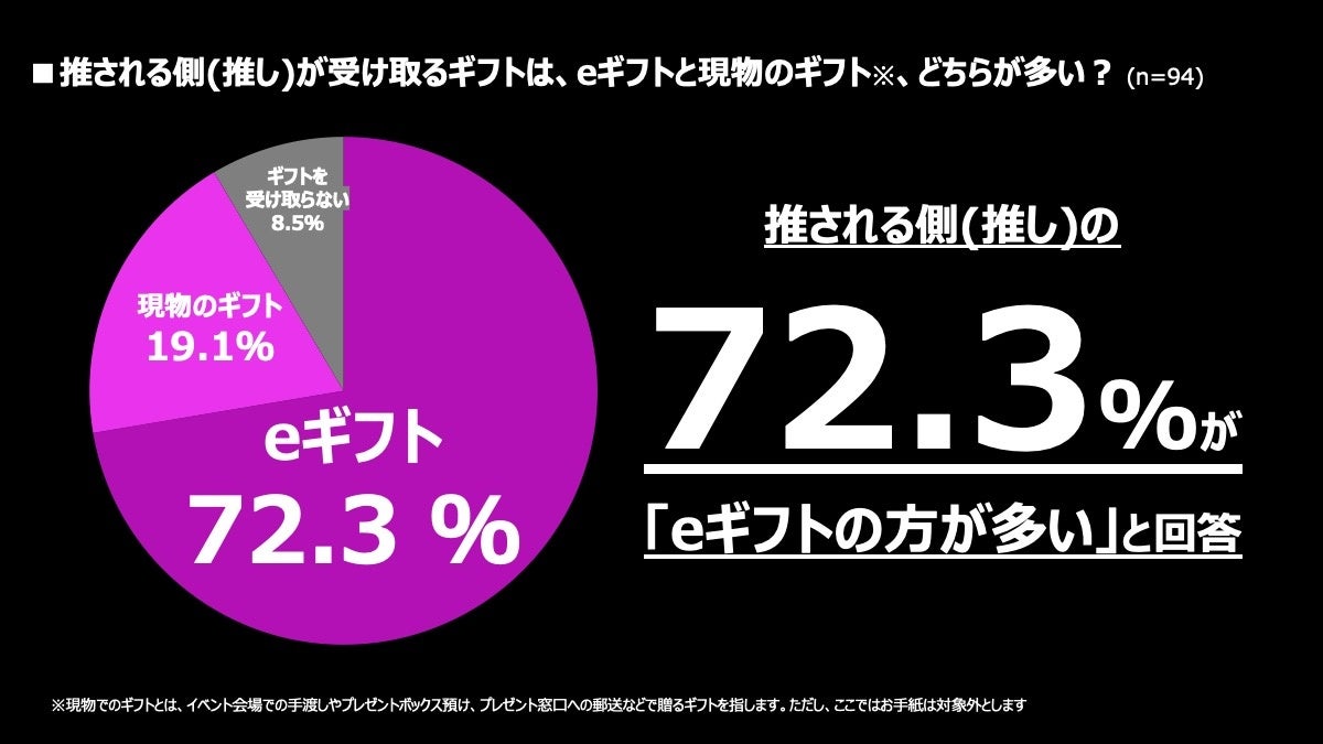 - ファンからのギフトの受け取り方として約72%が「eギフトの方が多い」と回答