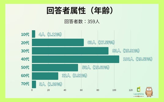 年代別では、40代が最多で29.53%(106名)、次いで30代が25.91%(93名)、20代が17.55%(63名)と続き、働き盛り世代からの回答が全体の約7割を占める結果となりました。