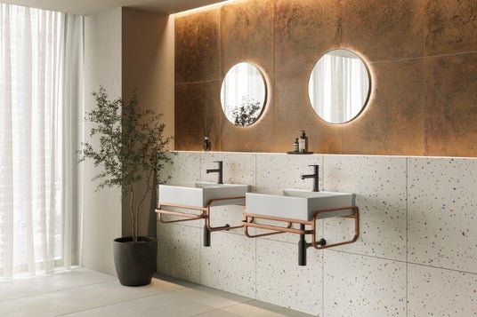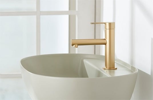 トレンドカラーのグレーやゴールドを取り入れた、こだわりの空間に最適な混合水栓。空間のアクセントとして、鮮やかさを演出します。