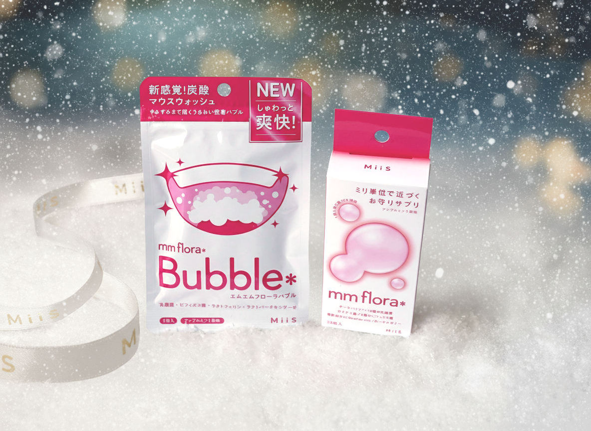 MiiSの代表アイテムを特別なギフトボックスに詰め込んだホリデー限定セット。ホリデーシーズンのホワイトニングケアにおすすめの歯の美容液「薬用 ホワイティエッセンス」や人気の美白*1歯磨き粉「ホワイティクリーム」、口内環境を整えるCICA*2配合のマウスウォッシュ「ブレスエッセンス」、歯磨きだけでは落としきれない、歯間の汚れをケアする「ミントフロス」、さらにSNSで話題の口臭ケア「エムエムフローラ」と「エムエムフローラバブル」をセットにしました。