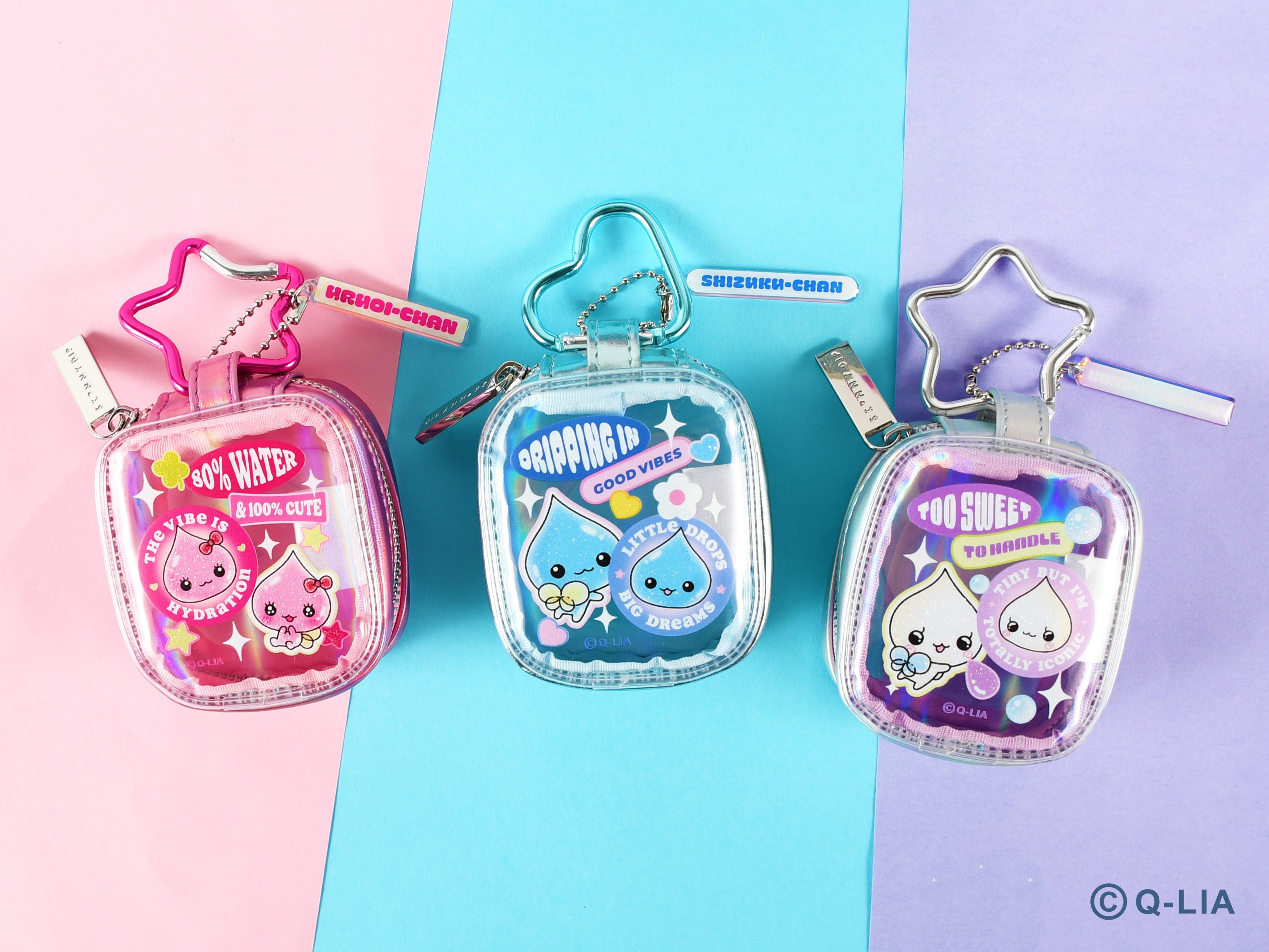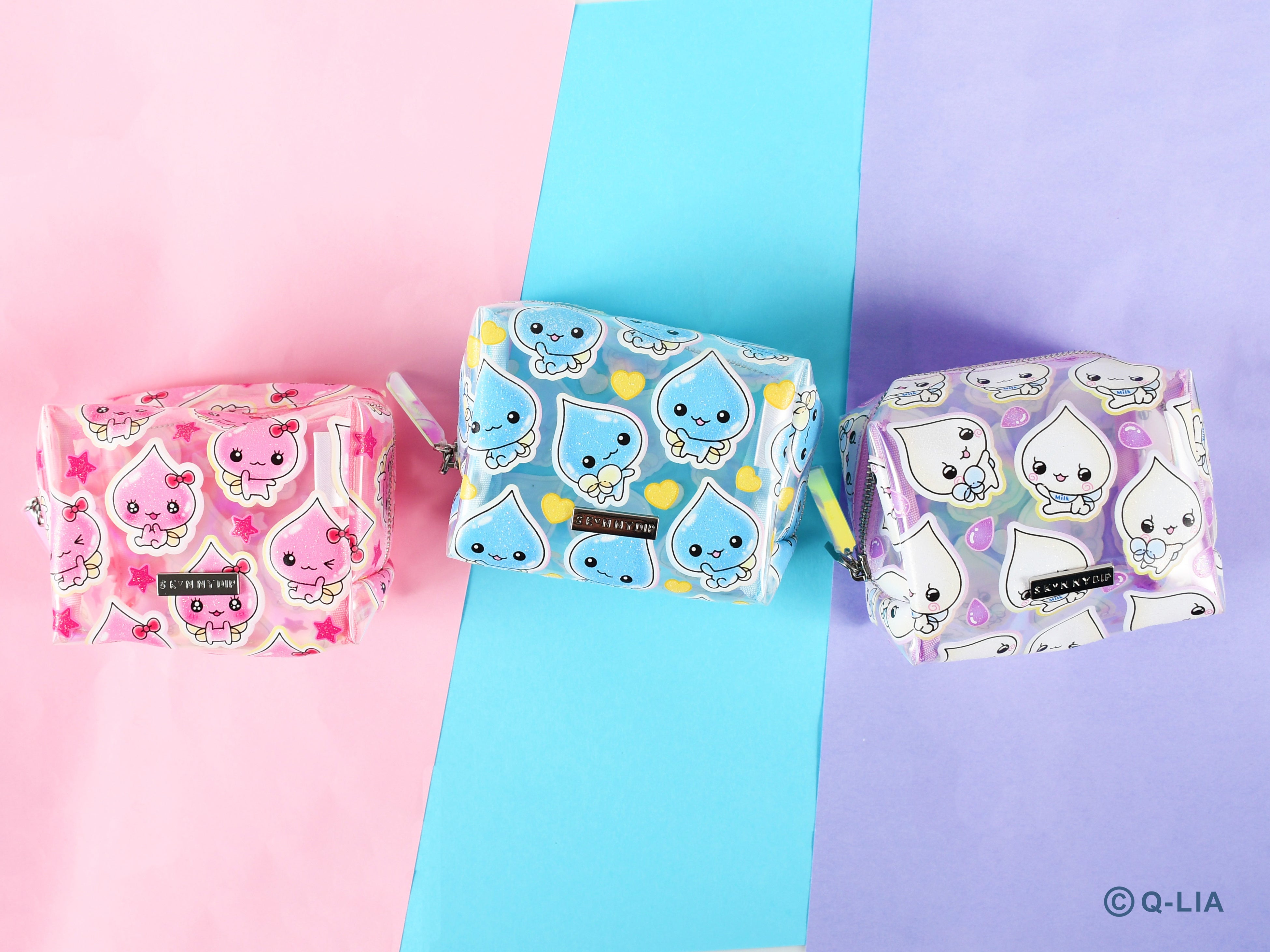 しずくちゃん達をグリッター加工でデザインしたポーチ。マチもしっかりとあるため、モバイルアクセサリーやコスメ等しっかり収納できる持ち歩きやすいサイズ感のポーチ。(サイズ目安:約 H8.5×W11×D7cm)