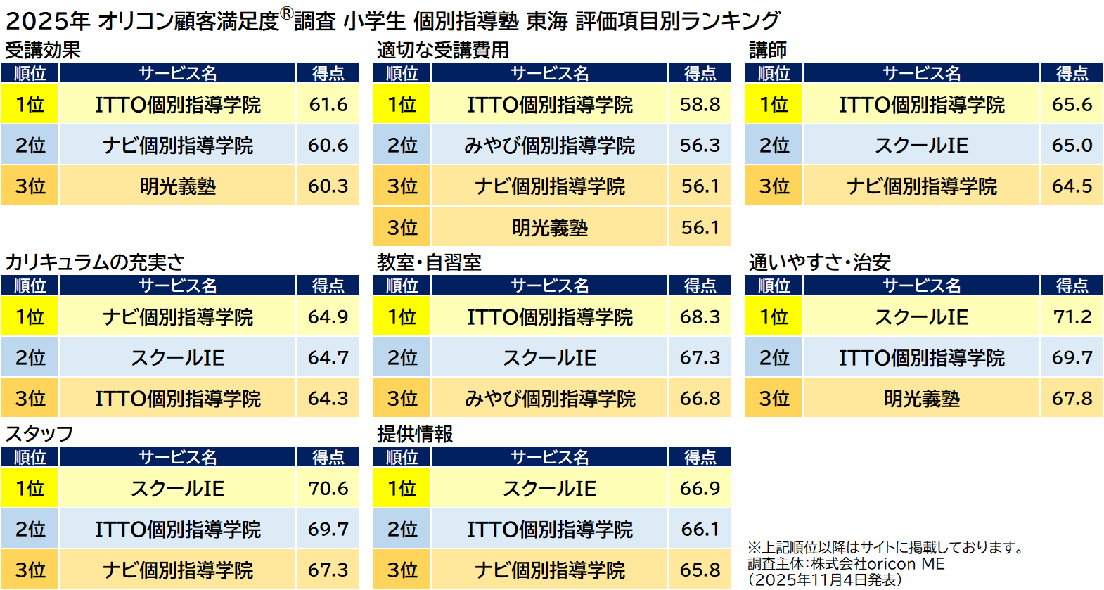『小学生 個別指導塾 東海』<2022年の発表以来、4回目>