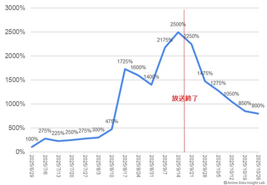 株式会社ブシロード (本社:東京都中野区、代表取締役社長:木谷高明)のグループ分析組織にあたるアニメデータインサイトラボ(代表:大貫佑介)は、アニメビジネスにおける調査を実施しました。今回は、2025年秋クールのアニメ作品を対象に、トレンド指数(Google検索量)とファン指数(X投稿量)の両面からアニメの注目度推移を検証・分析していきます。報道関係の皆様におかれましては、ぜひ本情報をお取り扱いいただきますよう、お願い申し上げます。