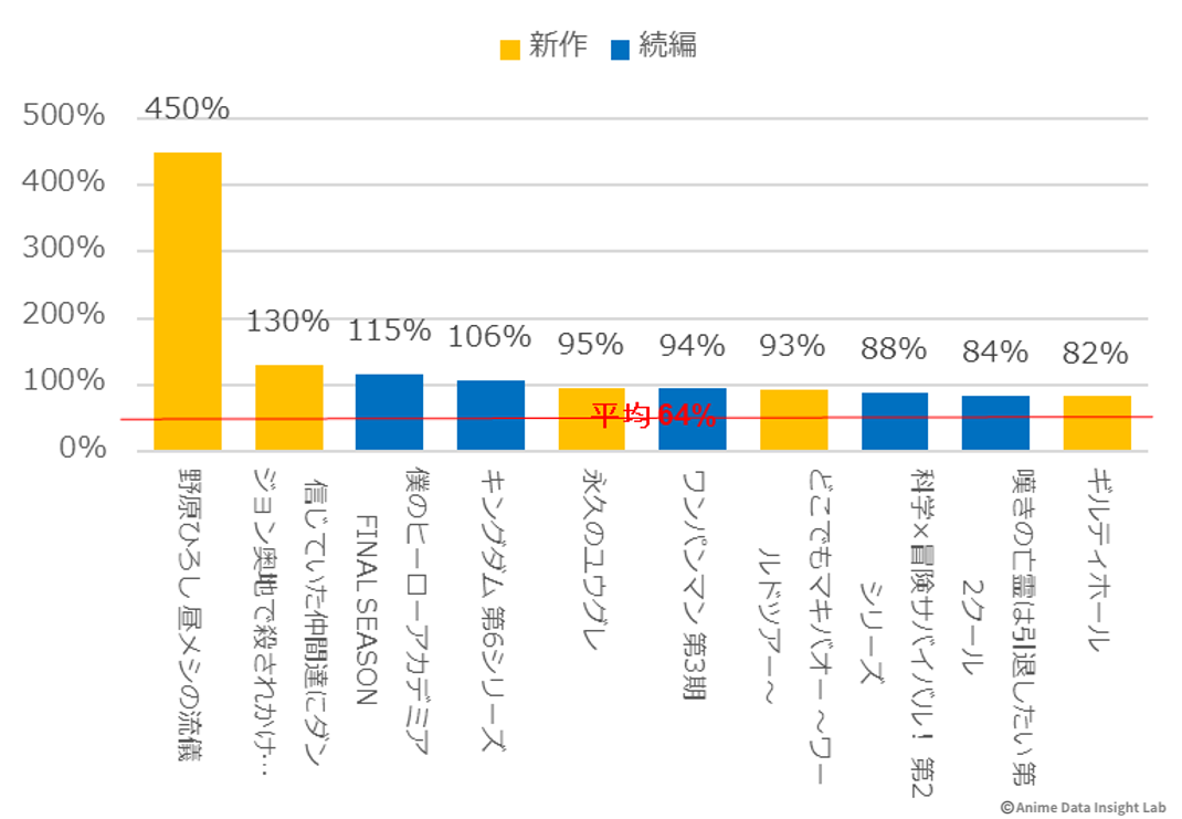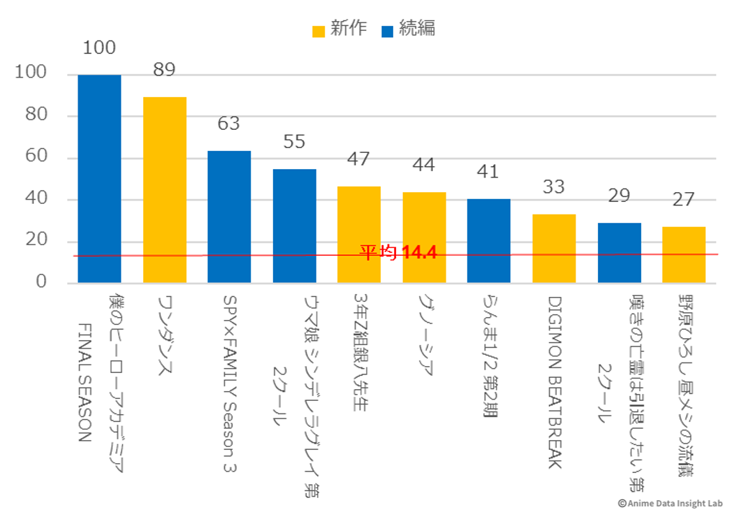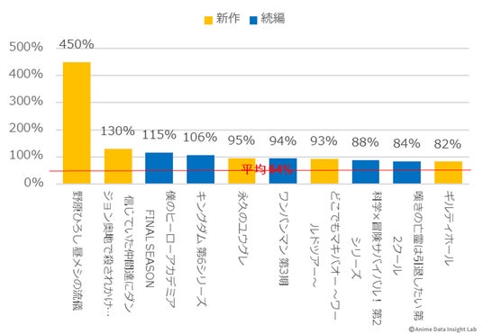大型続編の『僕のヒーローアカデミア FINAL SEASON』(115%)と『キングダム 第6シリーズ』(106%)も、初週を上回る注目度を維持しており、シリーズファンの継続的な支持を得ている。