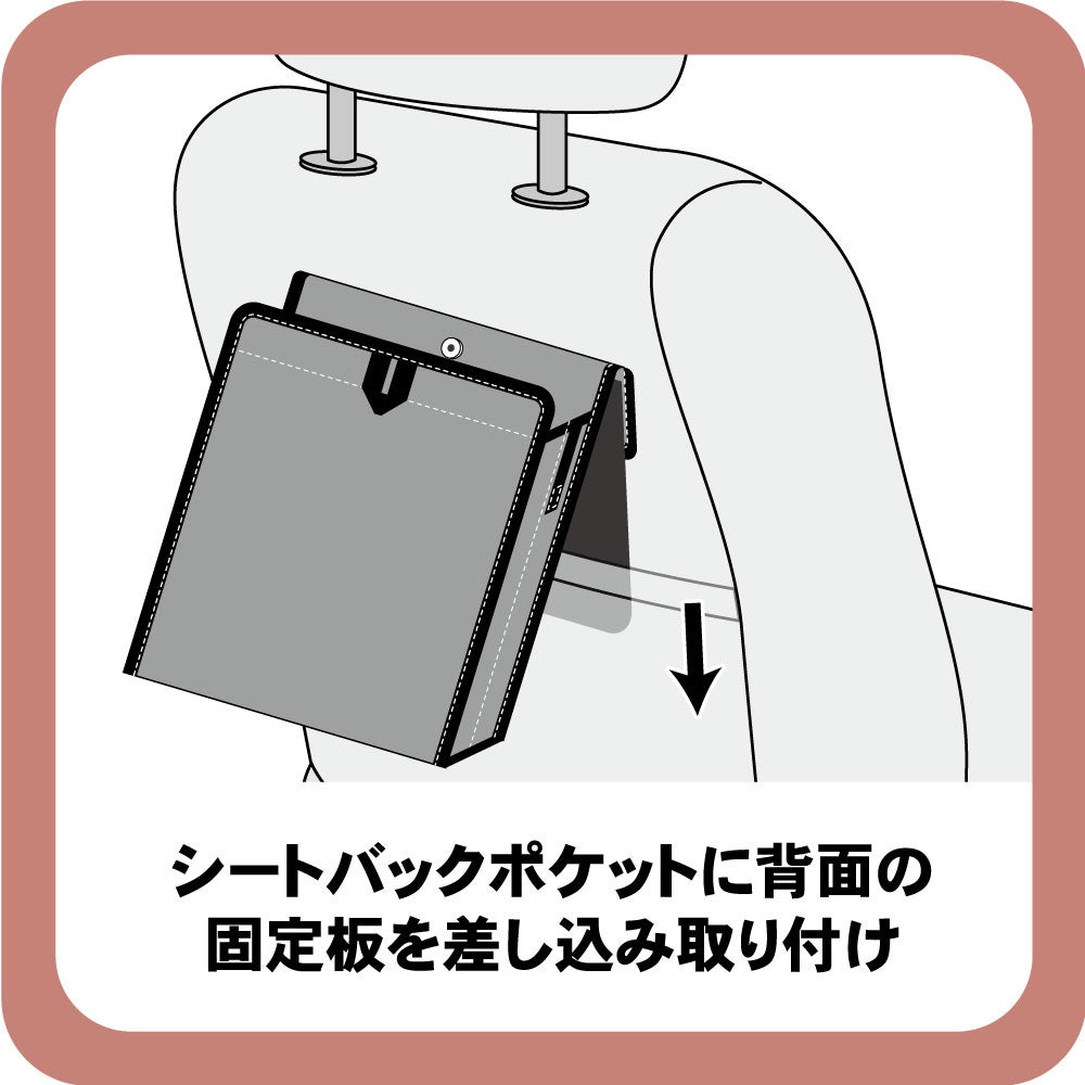 車の座席後ろのポケットに固定板を差し込むことで取り付け!