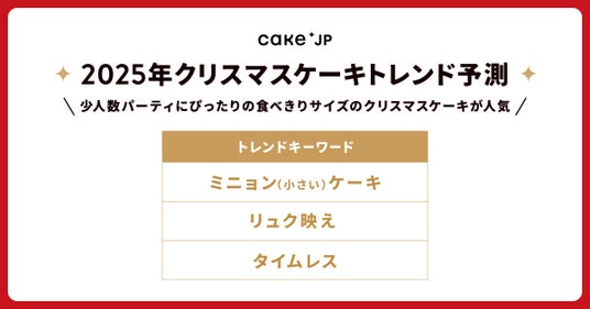 また、Cake.jpはクリスマスケーキの予約をスタートしています。トレンド発表にあわせてCake.jpからおすすめのクリスマスケーキもあわせてご紹介いたします。