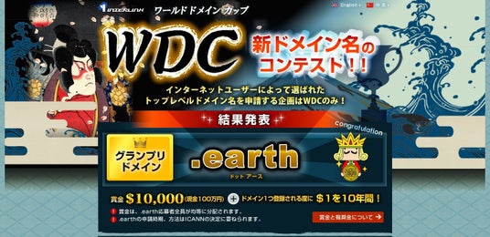 「.earth」は、“地球”という普遍的なキーワードを冠したトップレベルドメイン(TLD)で、2009年に開催したコンテスト『WDC(ワールドドメインカップ)』 (https://www.worlddomaincup.com/japanese/)にて、 世界中から寄せられた約11,000件、ドメイン種別3,944種類の中より、一般投票で選ばれました。