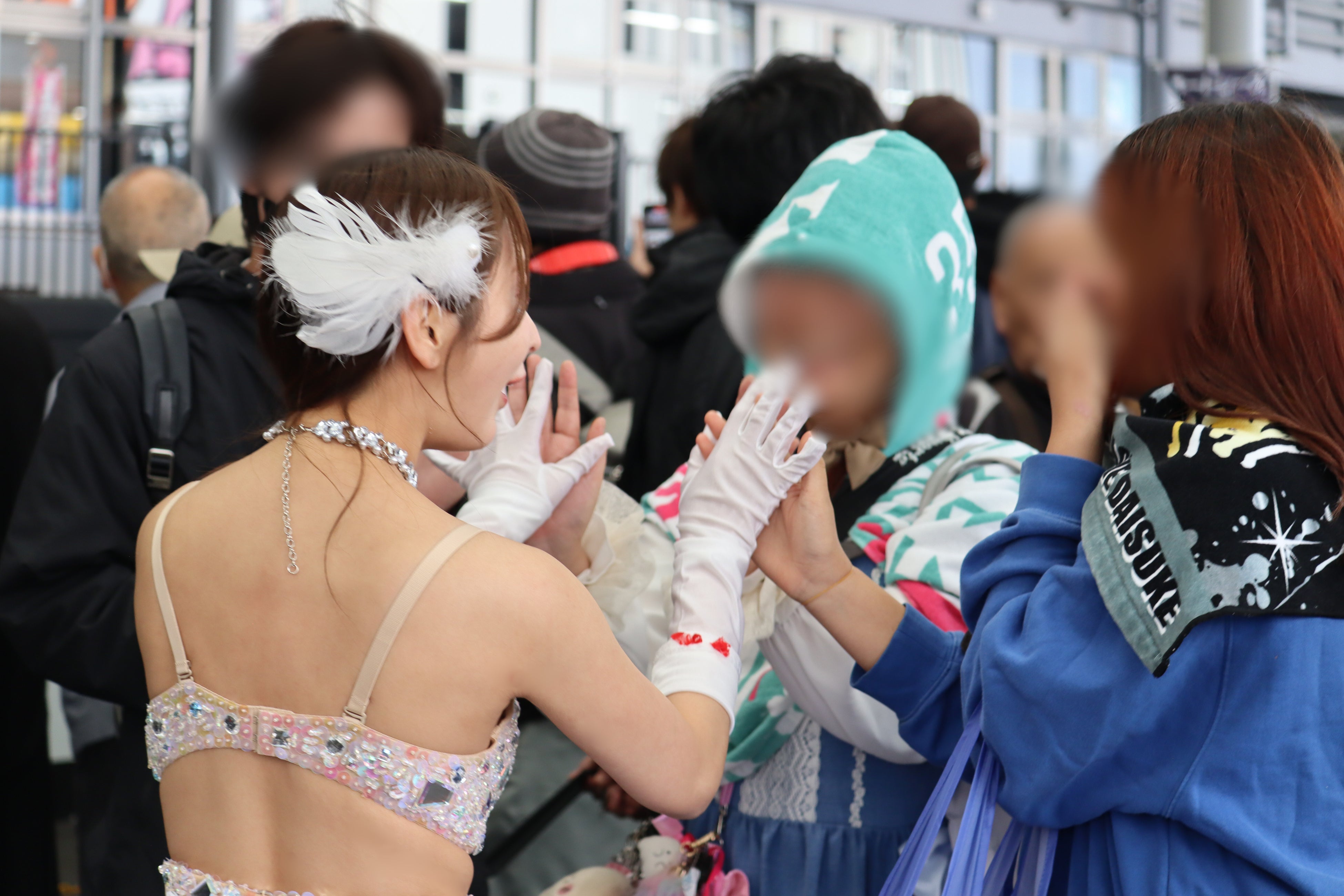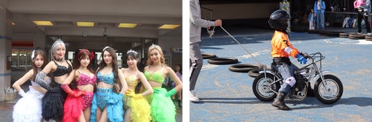 飯塚オートレース場内のステージには、六本木の夜を彩る「ROKUSAN ANGEL」(旧バーレスク東京)発のショーガールズユニット「BURLESQUE TOKYO Fabulous Show girl」が、車番色をモチーフにしたカラフルな衣装で登場しました。洗練されたダンスとパワフルな歌声を披露し、会場を大いに沸かせました。