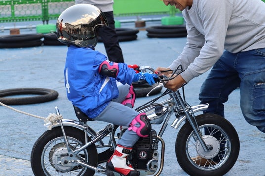 同日、会場内の特設エリアでは、元オートバイレーサーの青木宣篤氏が主催する子ども向けイベント「キッズバイク教室」が開催されました。未来のライダー育成およびオートレース業界のさらなる活性化を目指して開催された本イベントには、親子30組が参加しました。初めてバイクに触れる子どもたちも、プロレーサーによる丁寧な指導のもと、オートバイクを楽しみました。参加した子どもたちは「かっこいいからオートレーサーになりたい!」「もっとオートバイクに乗りたい!」と目を輝かせて語りました。初めてのオートレース体験を会場には笑顔と歓声があふれ、家族でバイクの楽しさを体感する温かな時間となりました。