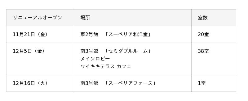 ■ホテルハワイアンズ2025年中の改装リニューアルオープンスケジュール