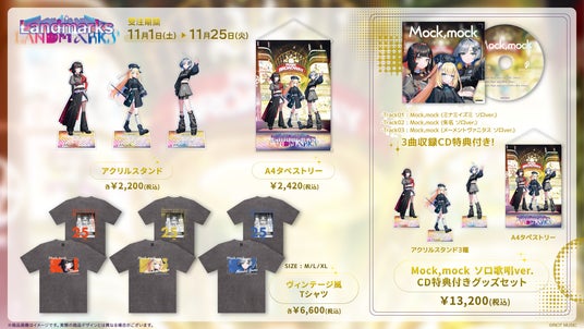 2025年11月25日(火)までの期間限定で、収録曲『ダリダリ』『OUR UNIVERSE』『Mock,mock』をテーマにした記念グッズを発売中です。「アクリルスタンド」や「A4タペストリー」、「ヴィンテージ風Tシャツ」に加え、ソロ歌唱Ver.を収録した特典CD付属の「グッズセット」もご用意しています。
