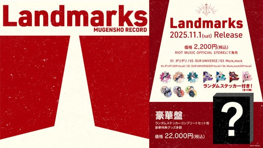 株式会社RIOT MUSIC(本社:東京都港区、代表取締役:舩橋 純、読み:ライオットミュージック、以下「RIOT MUSIC」)は、同社が運営するVSingerレーベル「無原唱レコード」のPrologue EP『Landmarks』(読み:ランドマークス)を、2025年11月1日(土)よりRIOT MUSIC OFFICIAL STOREにて発売いたしました。