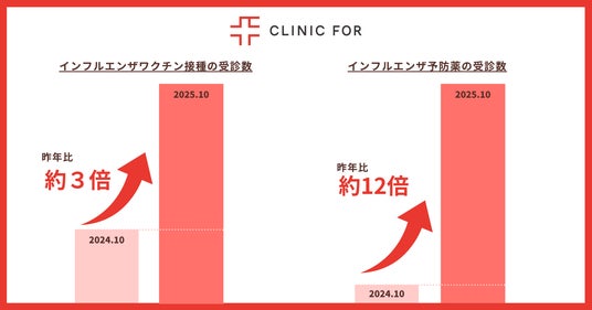 対面診療とオンライン診療を展開する「クリニックフォアグループ」(以下クリニックフォア)では、昨年より1カ月ほど早い全国的なインフルエンザの流行に伴い、感染対策を目的とした受診者が急増しています。