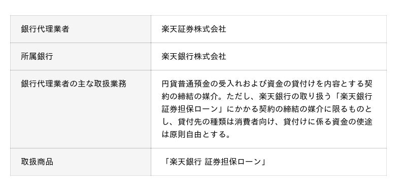 「楽天銀行 証券担保ローン」商品概要説明書についてはこちらをご覧ください。