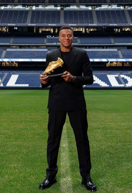 2025年11月1日マドリードにて、ゴールデンブーツ賞の受賞時に、キリアン・エムバぺがディオールを着用しました。