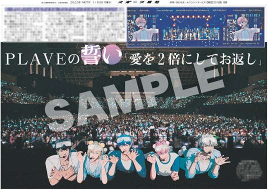 スポーツ報知を発行する報知新聞社(代表取締役社長・長谷川剛)は新聞の一部紙面をコンビニエンスストアのマルチコピー機からプリントできる「スポーツ報知コンビニプリント」サービスを展開中。スポーツ紙ならではの大きな写真を使った紙面をプリント版として販売しています。新たに11月3日付掲載、アジアを中心にグローバルな人気を博しているKーPOPバーチャルアイドル「PLAVE」の日本初単独公演模様を伝える紙面を発売中です。