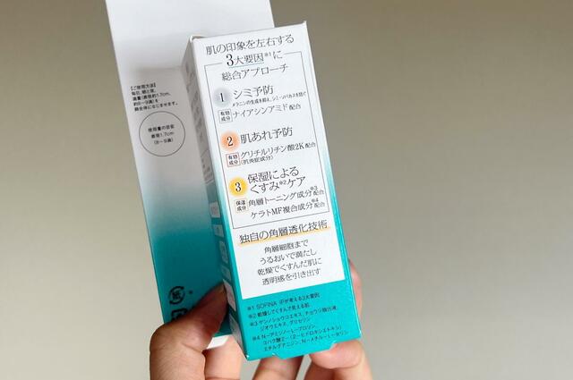 シミや肌あれを予防してくれる、ナイアシンアミドとグリチルリチン酸2Kの2つの有効成分が配合されているのもうれしいポイントです。