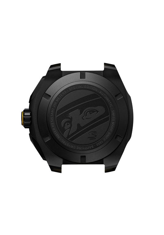 キャリバー16 / 自動巻 / ブラックダイヤル / グレード2チタン製ケース / ケース径 44 mm / 200m防水 / イエローラバーストラップ
