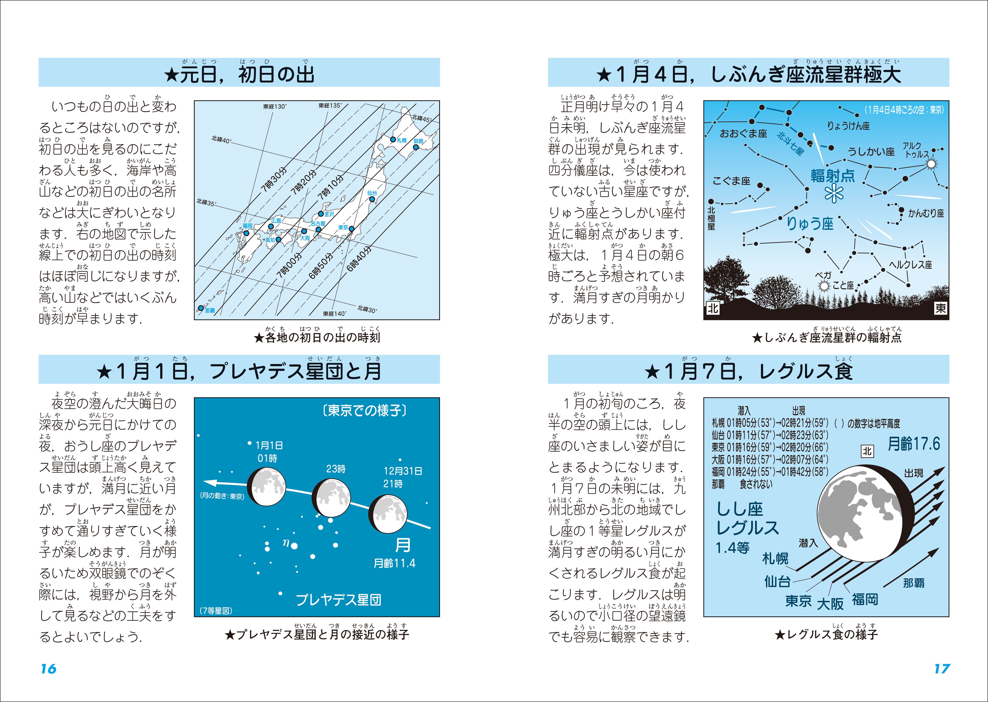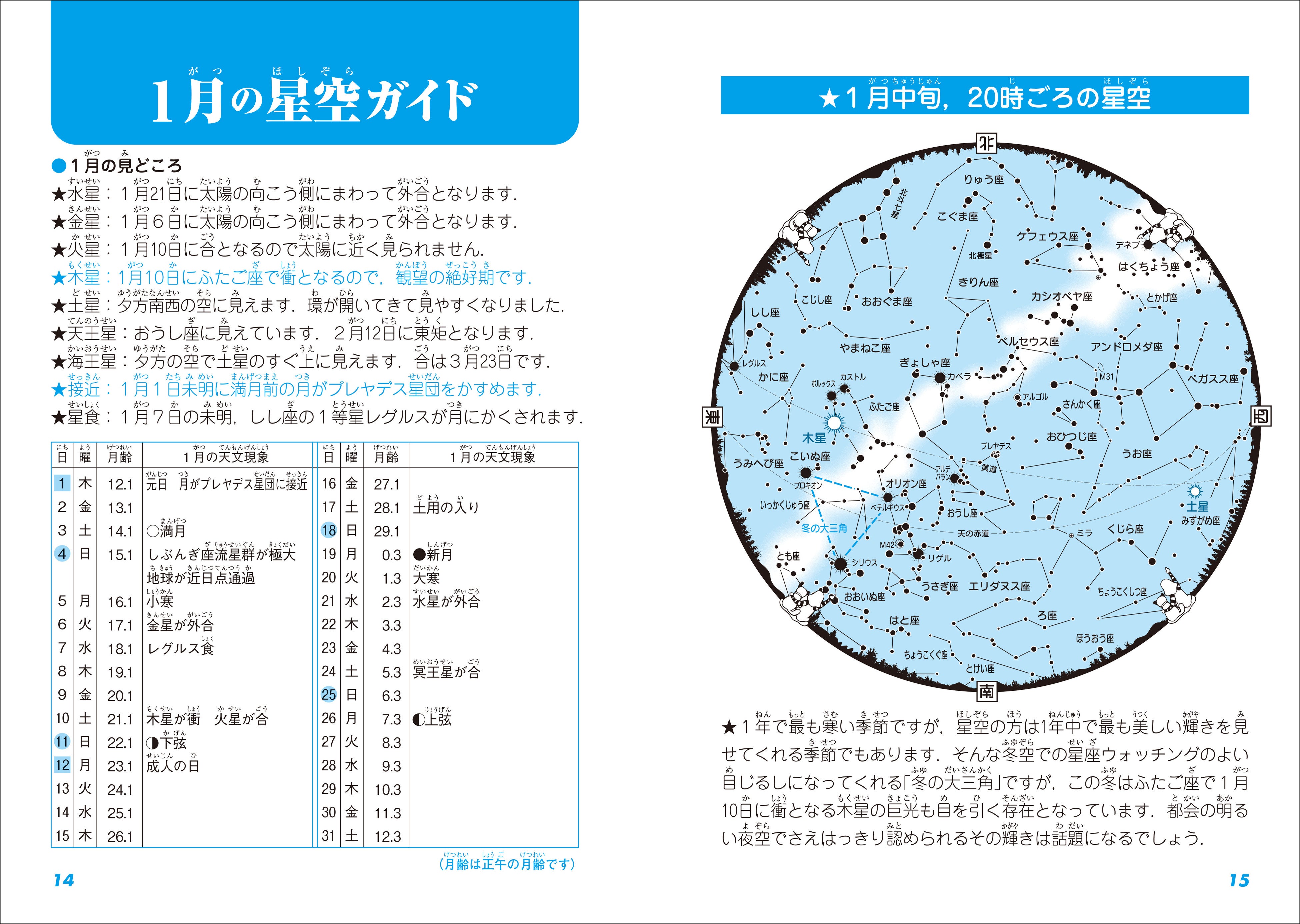 12ヵ月それぞれの月の星空の様子と、その月に起こる天文現象をわかりやすく紹介しました。