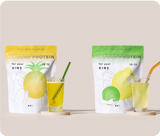 「KINS」水で割っておいしい!新感覚の雄プロテイン“VINEGAR PROTEIN”(パイナップル風味・レモンライム風味、280g)各2,980円