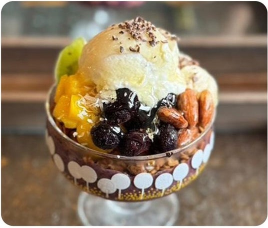 「NATURANOLA」with「発酵スタンド コメハナサカス」高たんぱくグラノーラ”NATURANOLA”チョコレート・ココア・シナモン・抹茶・イチゴ(180g)各1,620円、発酵米麹甘酒仕立てのアサイーボウル(1人前)1,080円 ※画像はアサイーボウル(前述のグラノーラを使用)